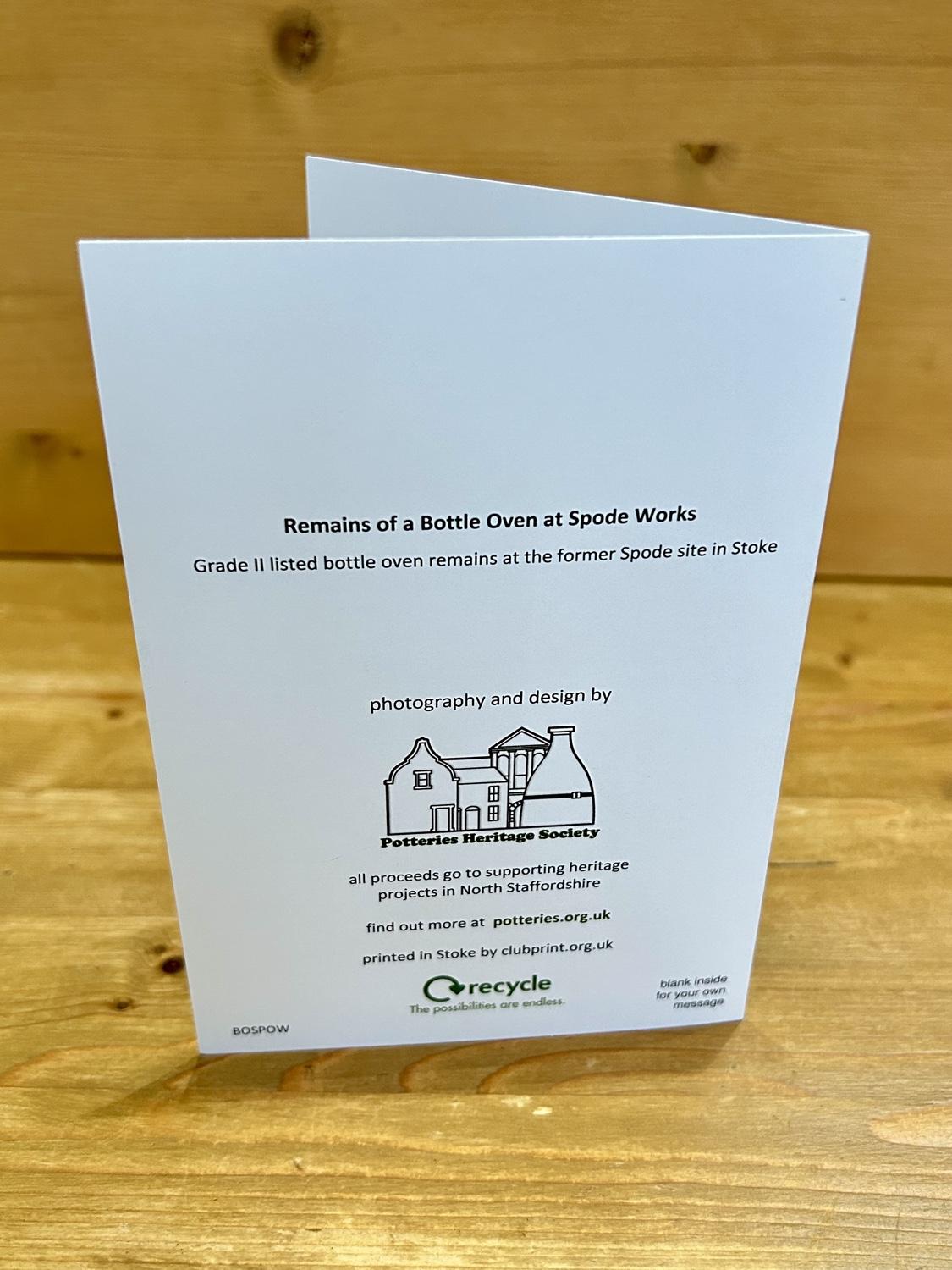 PHS Christmas Card with envelope. Photograph of a bottle oven remains in the snow at Spode Works. A6 size (150mm x 105mm). Blank inside for your own message. Price: £2.00 Quantity *