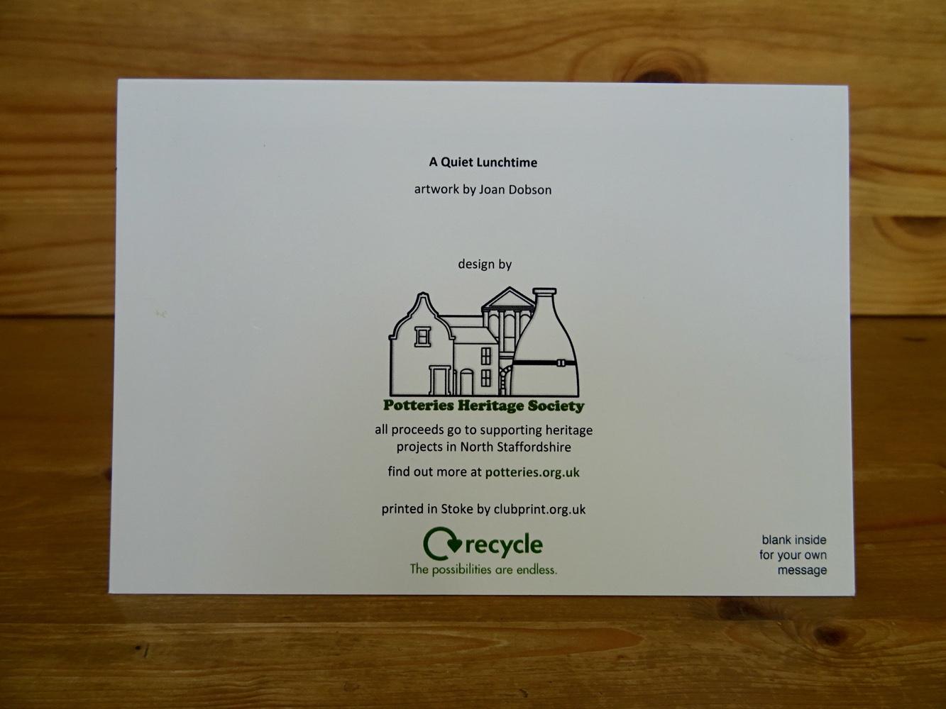 PHS Greetings Card with envelope. Artwork by local artist Joan Dobson. A6 size (150mm x 105mm). Price: £2.00 Quantity *