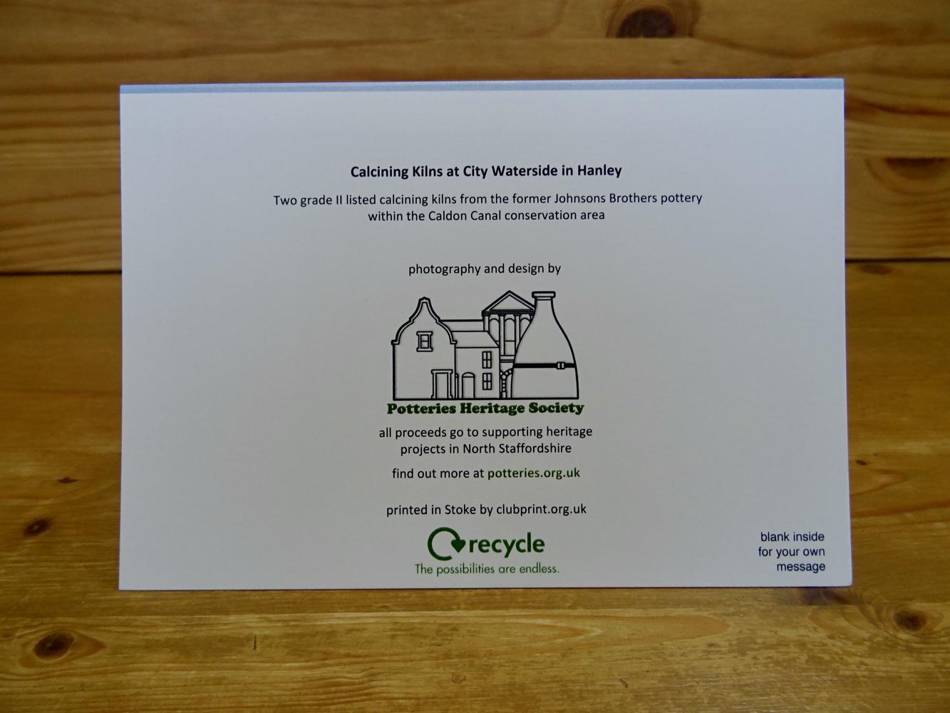 PHS Christmas Card with envelope. Photograph of two calcining kilns in the snow at City Waterside. A6 size (150mm x 105mm). Blank inside for your own message. Price: £2.00 Quantity *