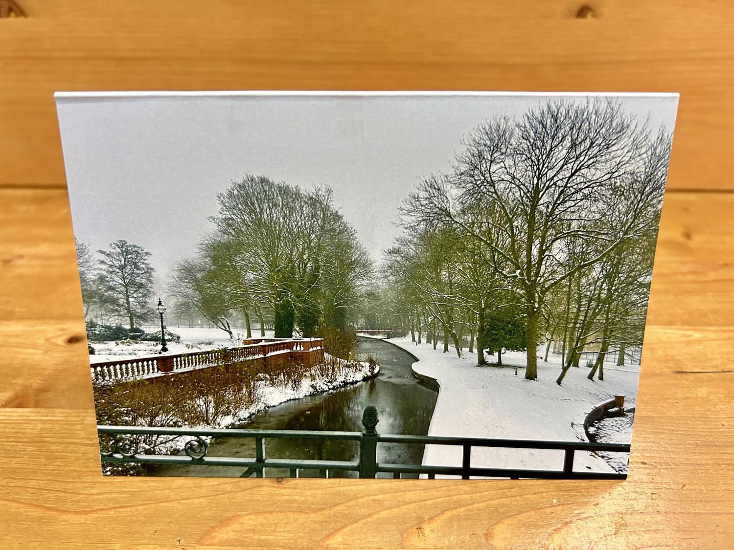 PHS Christmas Card with envelope. Photograph of the Caldon Canal at Hanley Park in the snow. A6 size (150mm x 105mm). Blank inside for your own message. Price: £2.00 Quantity *
