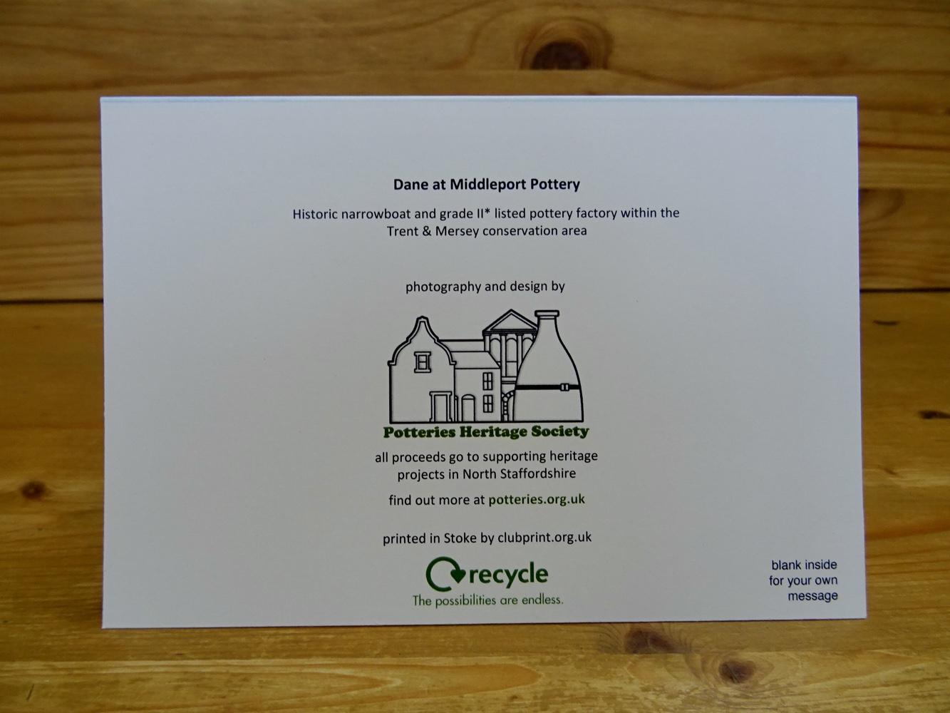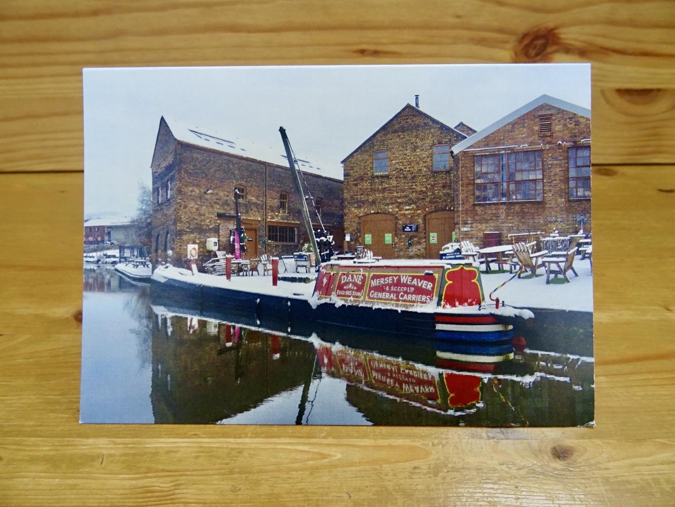 PHS Christmas Card with envelope. Photograph of historic narrowboat Dane in the snow at Middleport Pottery. A6 size (150mm x 105mm). Blank inside for your own message. Price: £2.00 Quantity *